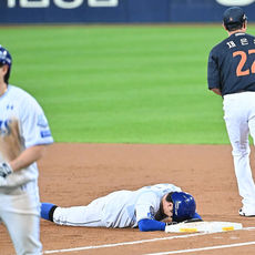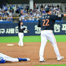 2025.10.21 19: 19최인호 레이저 송구에 아웃되는 강민호