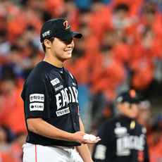 2025.10.22 19: 36정우주 호투에 엄지척 선물하는 하주석