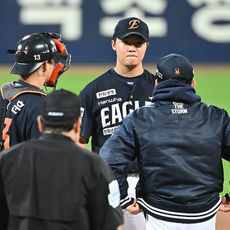 2025.10.22 19: 27정우주 볼넷에 마운드 오른 양상문 코치