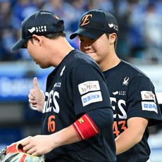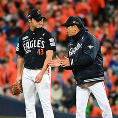 2025.10.22 19: 37정우주 호투에 격려 전하는 노시환