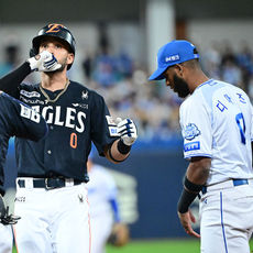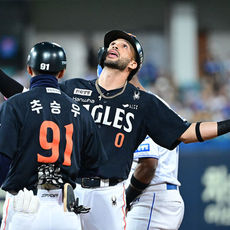 2025.10.22 19: 01첫 타석 안타로 출발하며 기뻐하는 한화 리베라토