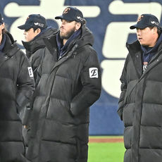 2025.10.22 18: 17한곳에 모인 한화 류현진-폰세-와이스-문동주