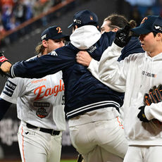 2025.10.24 22: 34와이스-폰세,'문동주와 나누는 승리의 기쁨'