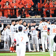 2025.10.24 21: 187회 무실점으로 틀어막은 와이스 향해 박수 보내는 한화 더그아웃