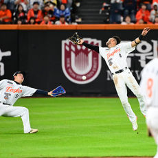 2025.10.24 21: 07하주석, 볼이 글러브에 없다