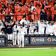 2025.10.24 20: 33노시환 2루타에 기뻐하는 한화 더그아웃