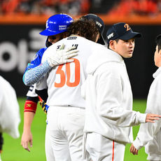 2025.10.24 19: 50타구 맞은 폰세, 포옹으로 격려하는 디아즈