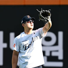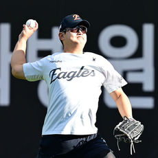 2025.10.24 15: 21김서현, '플레이오프 5차전 앞두고 캐치볼 훈련'
