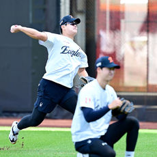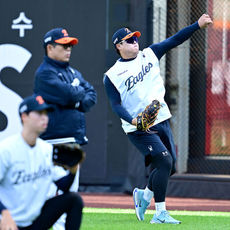 2025.10.24 15: 21플레이오프 5차전 앞두고 훈련 펼치는 한화 엄상백