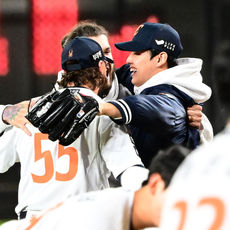 2025.10.24 22: 03한국시리즈 향하는 한화 김경문 감독, '폰세와 뜨거운 포옹'