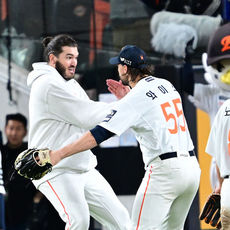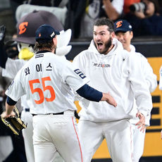 2025.10.24 21: 55한국시리즈 진출을 이끈 폰세와 와이스의 포옹