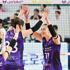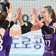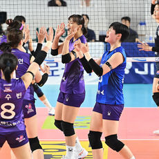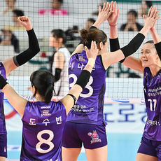2025.10.25 19: 06흥국생명에 5세트 접전 끝에 승리한 한국도로공사 선수들