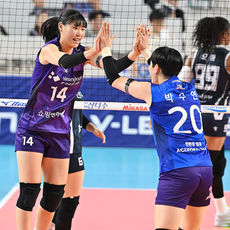 2025.10.25 17: 52정윤주, 박수연과 함께 나누는 득점 성공 기쁨