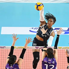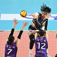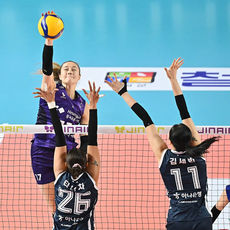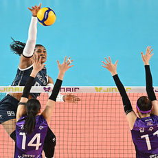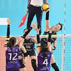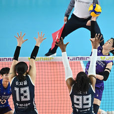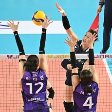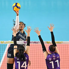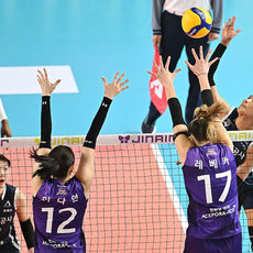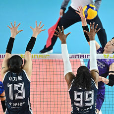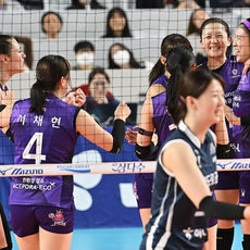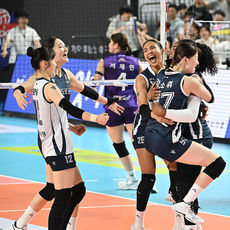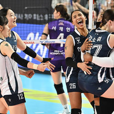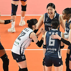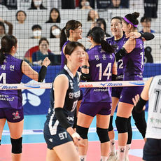 2세트 짜릿한 승리 거둔 흥국생명 선수들