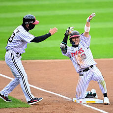 2025.10.26 15: 44신민재, 3루타 세리머니