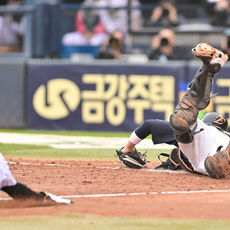 노시환 악송구 잡아내는 최재훈,'실점은 어쩔수 없어'