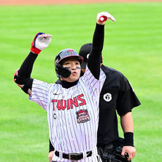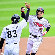솔로포 박해민,'한국시리즈 첫 홈런이에요'