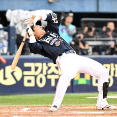 2025.10.26 14: 45톨허스트 몸쪽공에 깜짝 놀라는 최재훈
