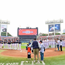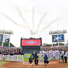 2025.10.26 14: 46한국시리즈 시작 앞두고 도열한 한화-LG