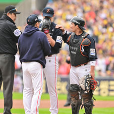 2025.10.26 14: 31양상문 코치-최재훈,'동주야! 실점 부담은 잊어'