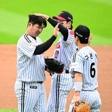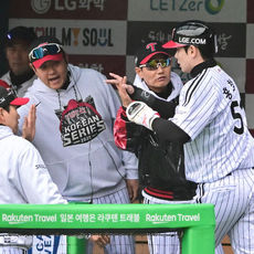 2025.10.26 14: 36캡틴 박해민 축하받는 문보경