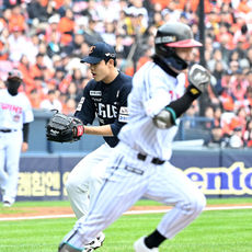 2025.10.26 14: 23신민재 내야안타 아쉬워하는 문동주