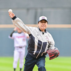 2025.10.26 14: 091차전 시구 김재박 전 감독, 녹슬지 않은 야구 실력