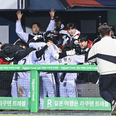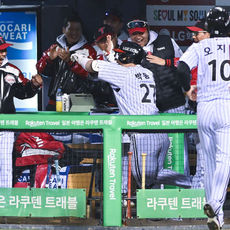 2025.10.27 19: 51투런포 박동원,'코칭스태프와 기쁨의 하이파이브'