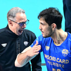 2025.10.28 20: 13우리카드 마우리시오 감독, '아라우조와 뜨겁게'