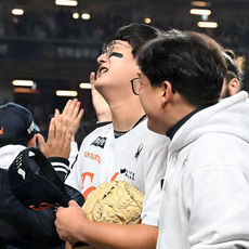 2025.10.29 22: 17환호하는 김서현, 3차전 잡았어