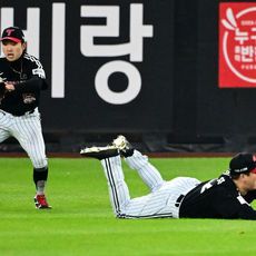 2025.10.29 21: 24문현빈 타구 놓친 김현수,'아쉽네'