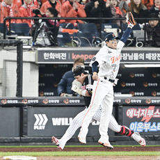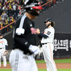 2025.10.29 20: 39최재훈,'폰세 쓰담쓰담'