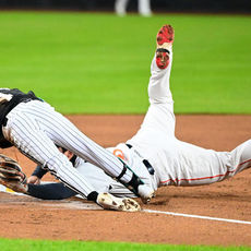 2025.10.29 19: 40신민재,'노시환 태그 전력 다해 피해봤지만...'