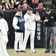 2025.10.29 19: 31오지환 고의 낙구 어필하는 김경문 감독