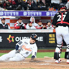 2025.10.29 19: 21김현수, 볼이 글러브에서 빠져 나갔어