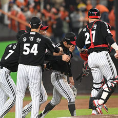 2025.10.30 22: 22승리의 기쁨을 나누는 LG