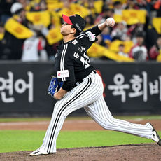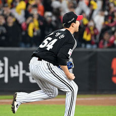 2025.10.30 22: 16노시환 잡고 기뻐하는 유영찬, 오늘은 내가 끝냈어'
