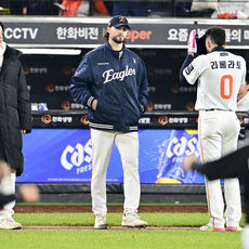 2025.10.30 22: 16LG 승리의 세리머니 지켜보는 한화 와이스