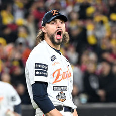 2025.10.30 19: 57김경문 감독 박수를 부르는 와이스의 포효