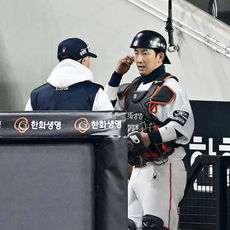 2025.10.30 19: 143회 이후 최재훈 포수 불러 이야기하는 김경문 감독