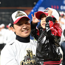 2025.10.31 23: 50LG 통합우승 주역 신민재, 귀여운 딸과 함께