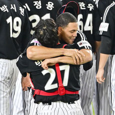 2025.10.31 23: 06포옹하는 김현수-박해민, 우리가 해냈어