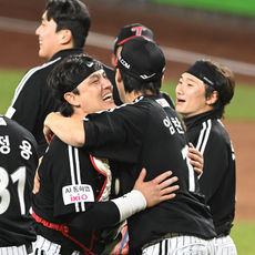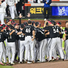 2025.10.31 23: 12오지환-박해민-치리노스-임찬규, 감격스러운 포옹