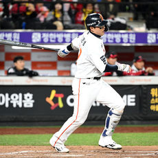 2025.10.31 21: 15류현진 상대 안타 날리는 김현수
