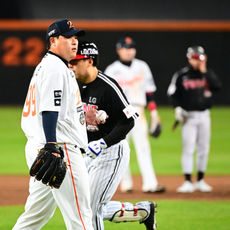 2025.10.31 21: 18류현진에 안타 치고 교체되는 김현수