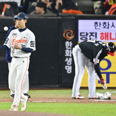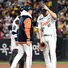 2025.10.31 19: 56구본혁 안타에 마운드 내려가는 정우주