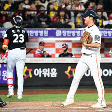 2025.10.31 19: 33정우주,'오스틴 삼진 잡고 미소'