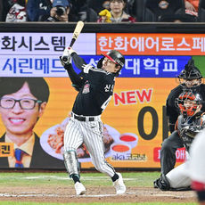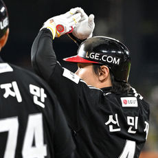 2025.10.31 19: 19신민재,'멀티 안타 환호'