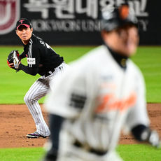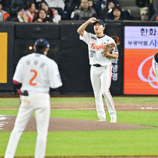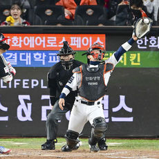 2025.10.31 19: 24가까스로 심우준 내야땅볼 잡아내는 문보경