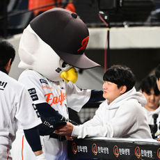 2025.10.31 18: 21한화 마스코트 위니, '김서현, 우리는 너를 믿어'
